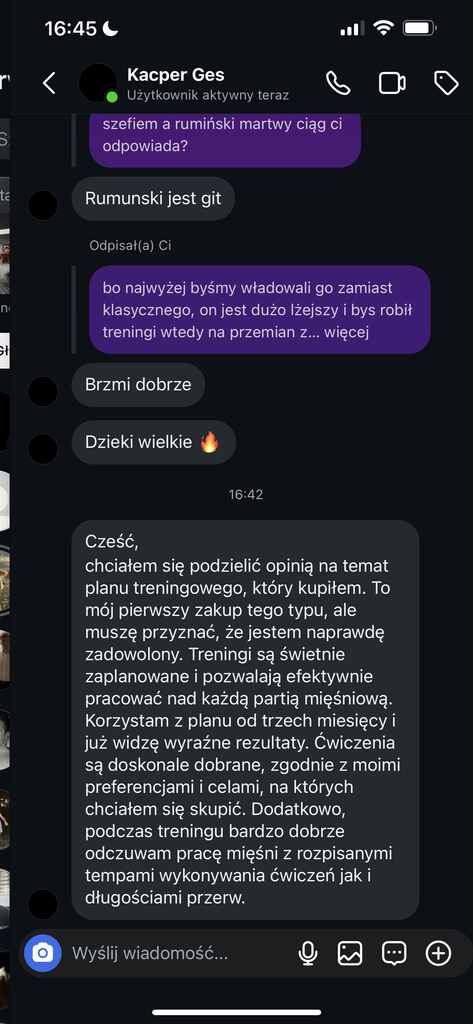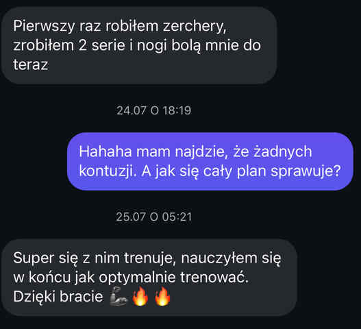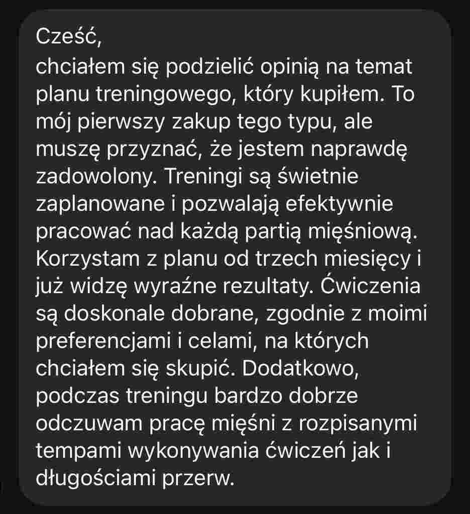 Zaczynasz swoją przygodę z nowym planem treningowym oraz moimi wytycznymi. Jeżeli potrzebujesz o coś zapytać albo masz wątpliwości, jestem stale do Twojej dyspozycji.
